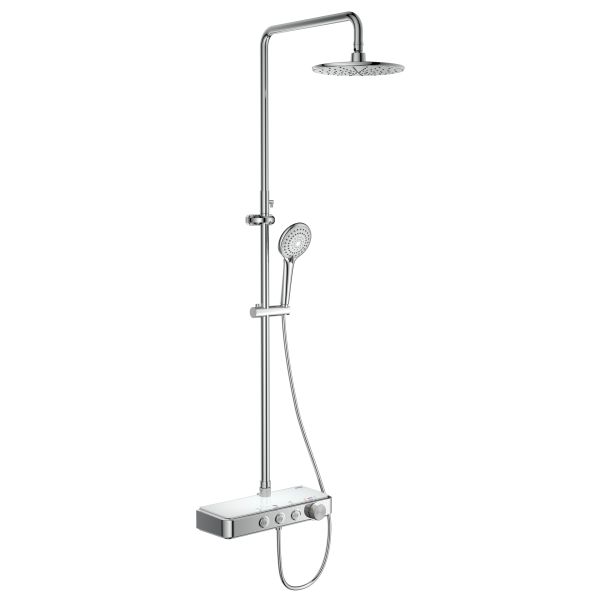 | Feature | complete set with rainfall shower, hand shower & faucet outlit, fixed on wall with large glass shelf |